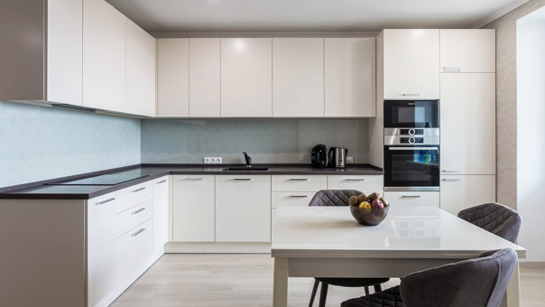 Кроме того, контрастные цвета могут добавить динамику интерьеру. Например, чёрная фурнитура на белых фасадах создаёт эффектный визуальный акцент.